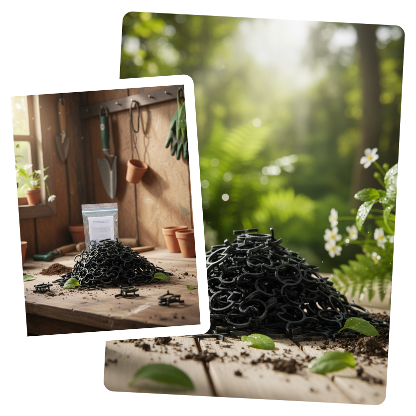 Met onze duurzame plantenclips groeit jouw tuin of kamerplant gezond en recht omhoog. Gemaakt van natuur, niet van plastic.